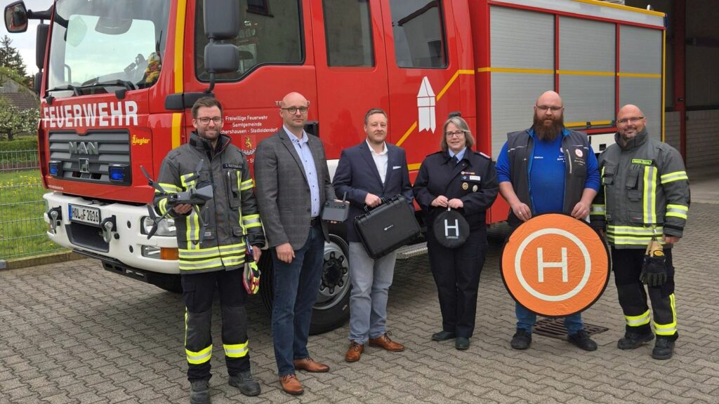 „Ich bin sehr froh, dass unsere Anfrage bei den Unterstützern zu so viel positiven Feedback geführt hat“, erklärt Dascho Wehner, der für die Feuerwehr die Initiative übernahm und auf Sponsorensuche ging. Denn zur regulären Ausstattung der Feuerwehr, die sich in der Trägerschaft der Samtgemeinde befindet, gehört eine Drohne (noch) nicht, auch wenn landauf landab immer mehr Feuerwehren auf diese neue Technik setzen. Und so waren sich auch alle Unterstützer einig, dass die Neuanschaffung die Arbeit der Feuerwehr sinnvoll ergänzen kann und ließen sich die Drohne im Rahmen der ersten Inbetriebnahme auch gleich einmal demonstrieren.